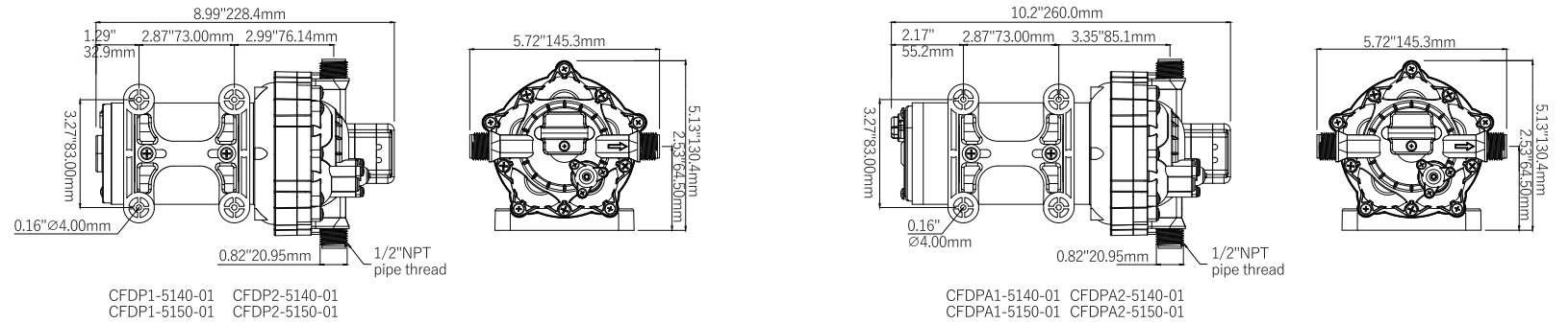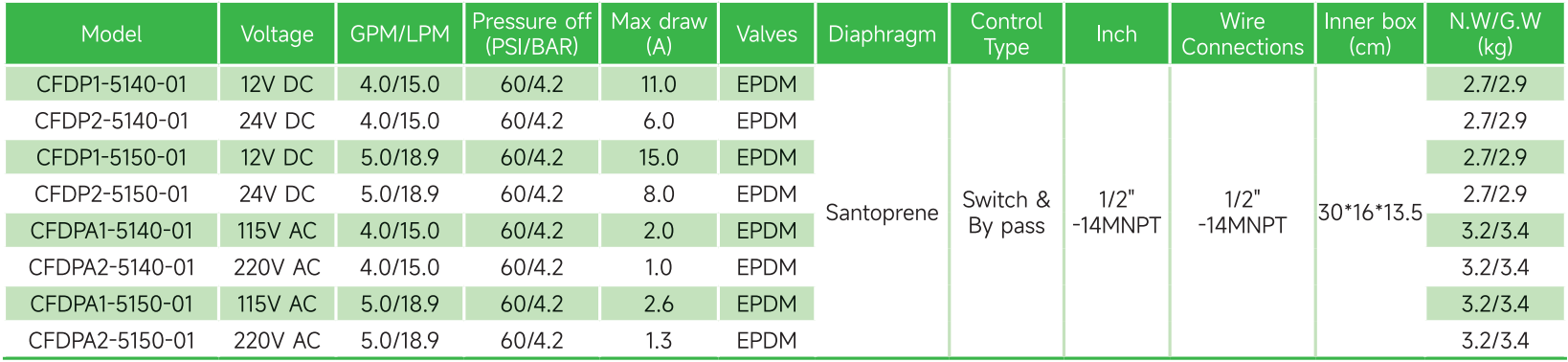 4 Chamber positive displacement diaphragm pump, self priming, capable of being run dry |