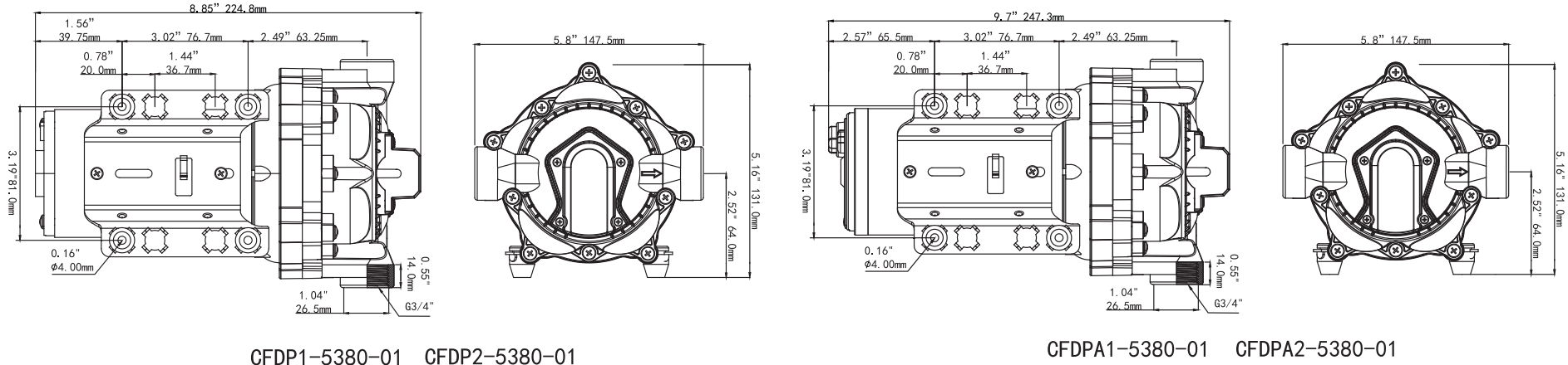 4 Chamber positive displacement diaphragm pump, self priming, capable of being run dry |