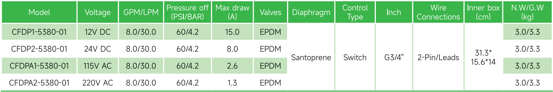 Shut-off Pressure 40PSI |