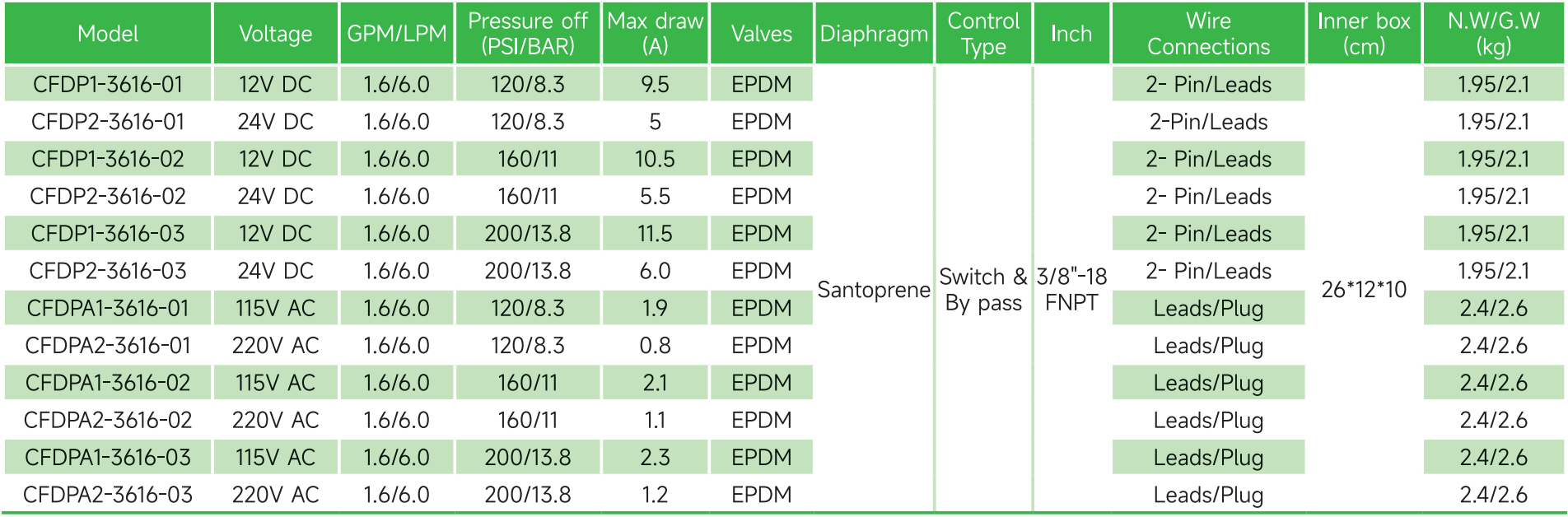5. Duty cycle: Intemittent (The continuous working time will be different undel different pressure)